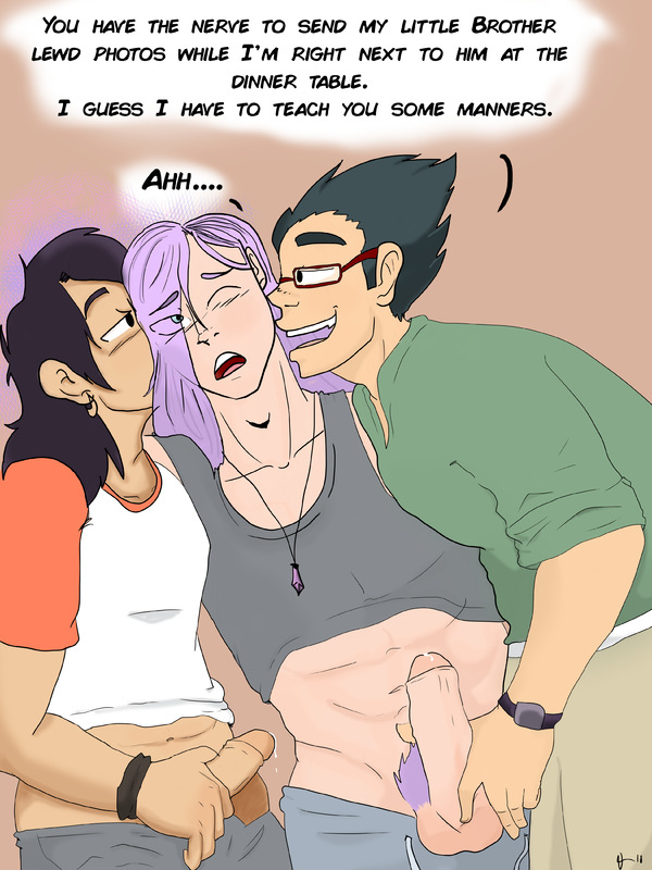 Trunks has been caught sending lewd photos to Goten while the Sons are at the dinner table. Gohan takes it upon himself to teach the lavender-hair rascal a lesson.